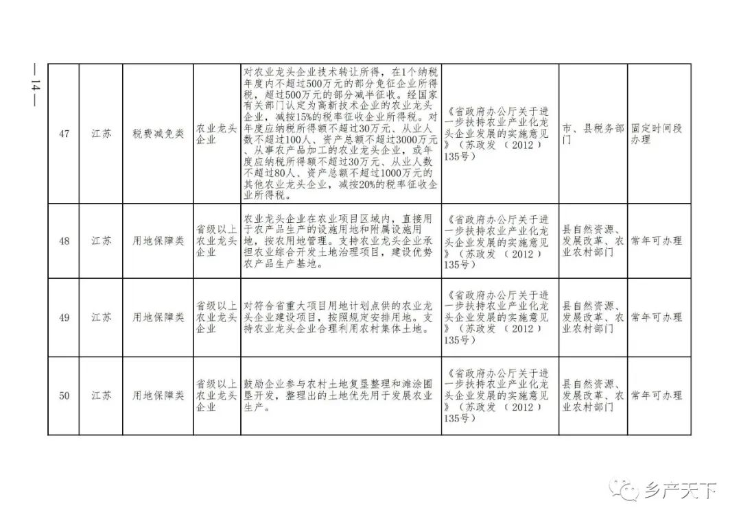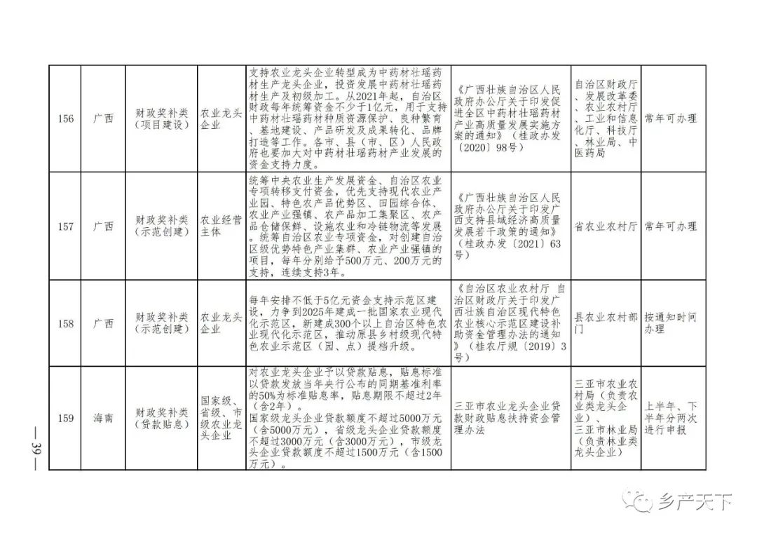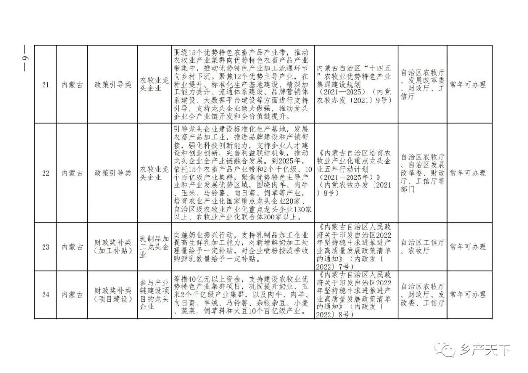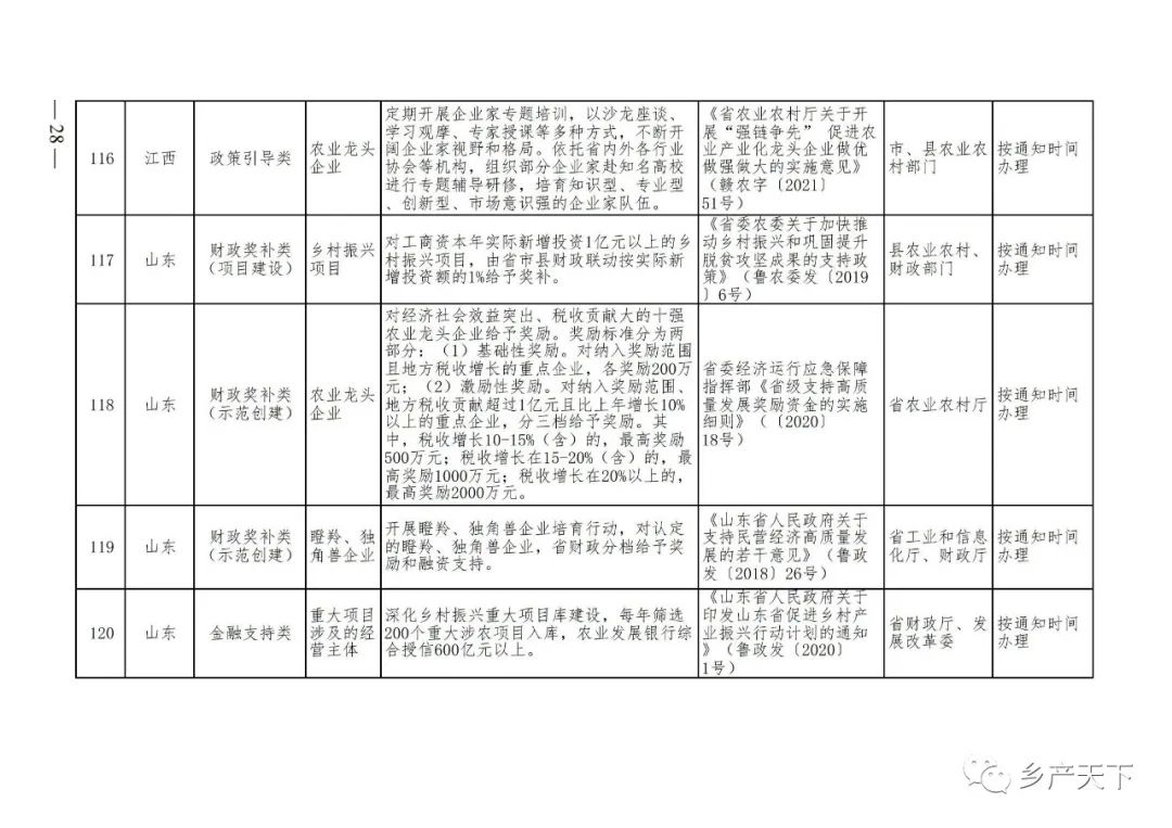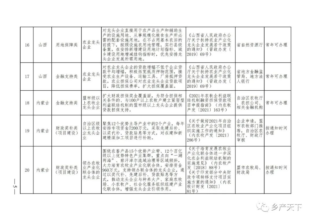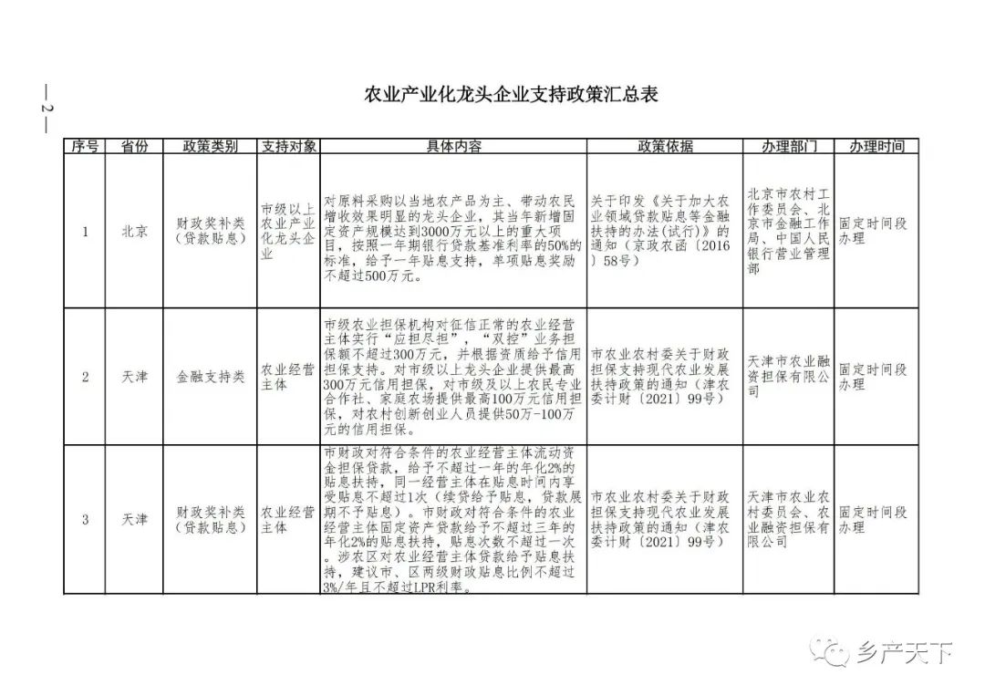 為加強對農業產業化龍頭企業的精準服務,農業農村部鄉村產業發展司收集了各省(區、市)對龍頭企業的支持政策,于近期印發《農業產業化龍頭企業支持政策清單》(簡稱《清單》),供各地互相參考學習。
