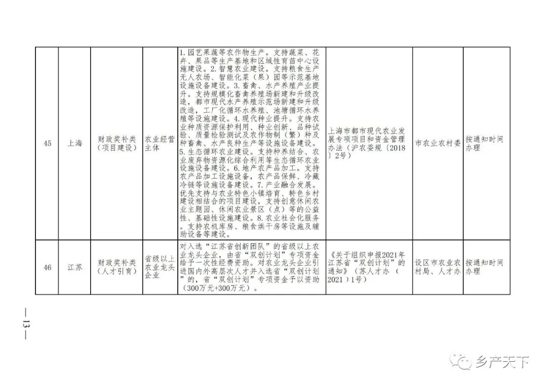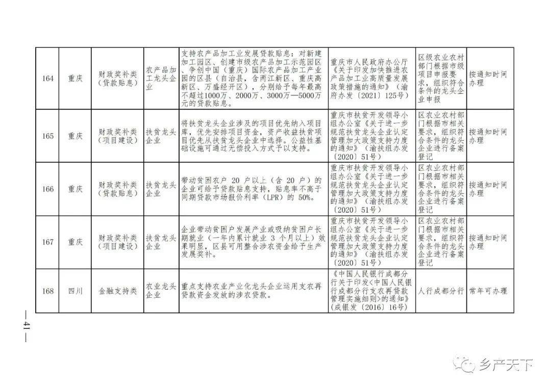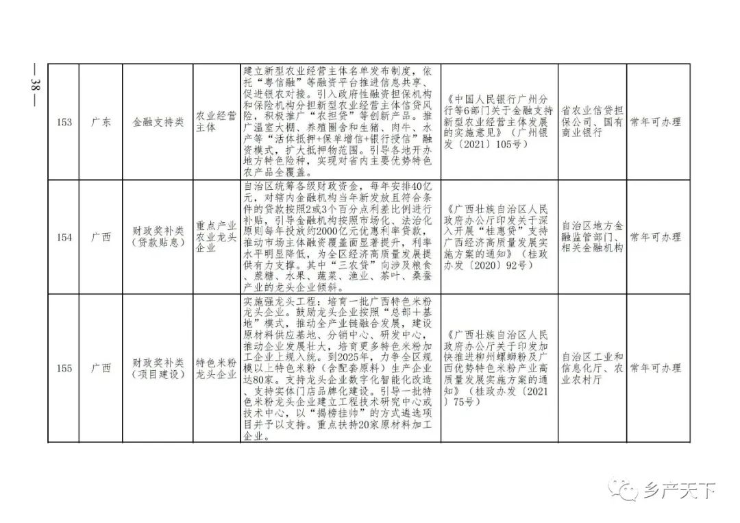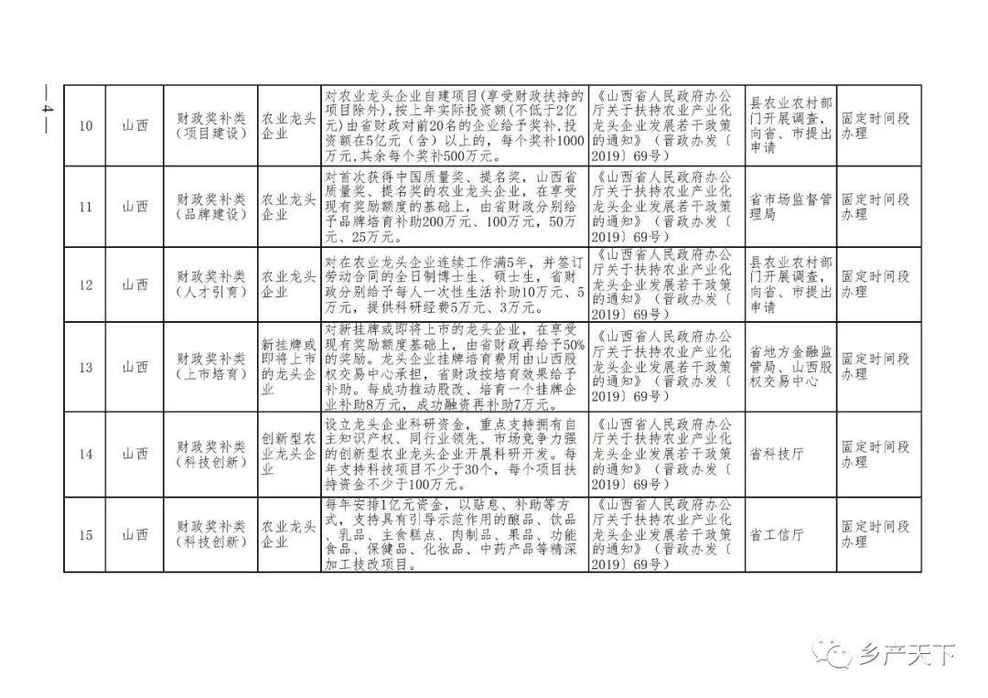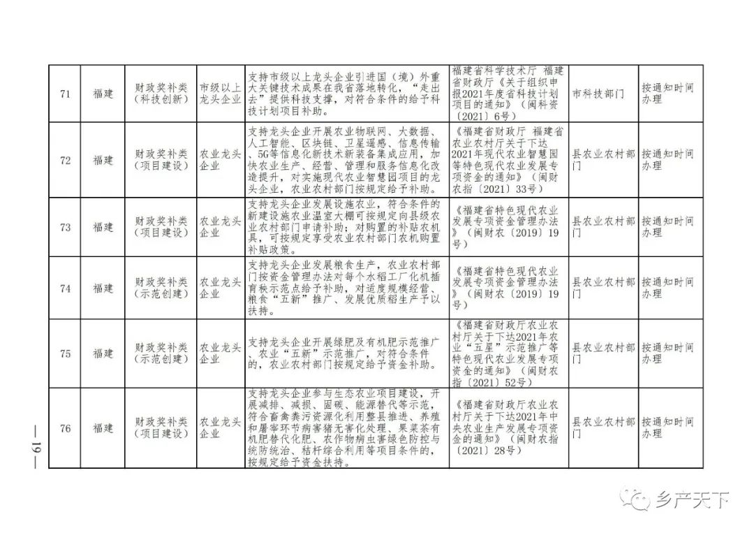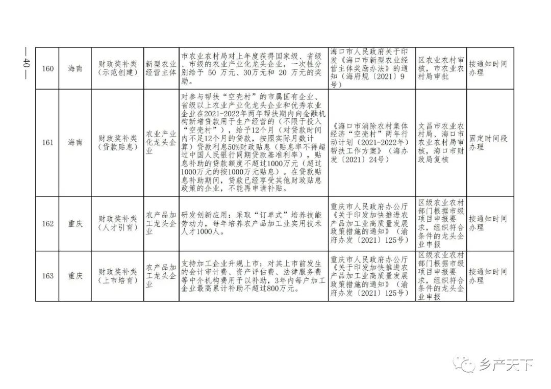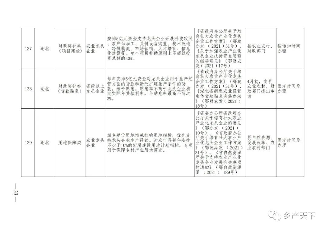 為加強對農業產業化龍頭企業的精準服務,農業農村部鄉村產業發展司收集了各省(區、市)對龍頭企業的支持政策,于近期印發《農業產業化龍頭企業支持政策清單》(簡稱《清單》),供各地互相參考學習。